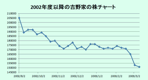 吉野家や焼肉屋(安楽亭、株式会社さかい)の株価が下落、寿司屋(カッパクリエイト、くらコーポレーション)の株価が上昇