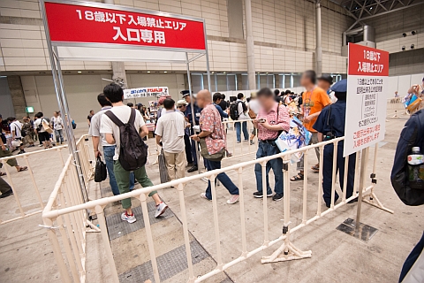 横しまな目でワンフェスにやって来た人が見逃せないのが、R18エリアです。セクシーを通り越したエロフィギュアの数々は、第8ホール隅っこ、柵で仕切られたR18指定エリアに存在しますのです。