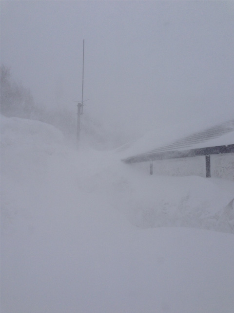 行けるところまで行ってみたが、偶然すれ違った地元の人に引き止められる。観測ポイントは建物の裏にあるけど雪に埋もれて行けないとのこと。ヒヤー