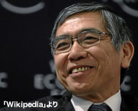 2013年4月4日は忘れられない日になったで。日本の経済史に大きな足跡を残すことになったで〜。その立役者がこの写真のおじさんや!どや、ええ顔してるやろ!黒田東彦(くろだはるひこ)さんていうお方で、終戦前年の1944年生まれ。